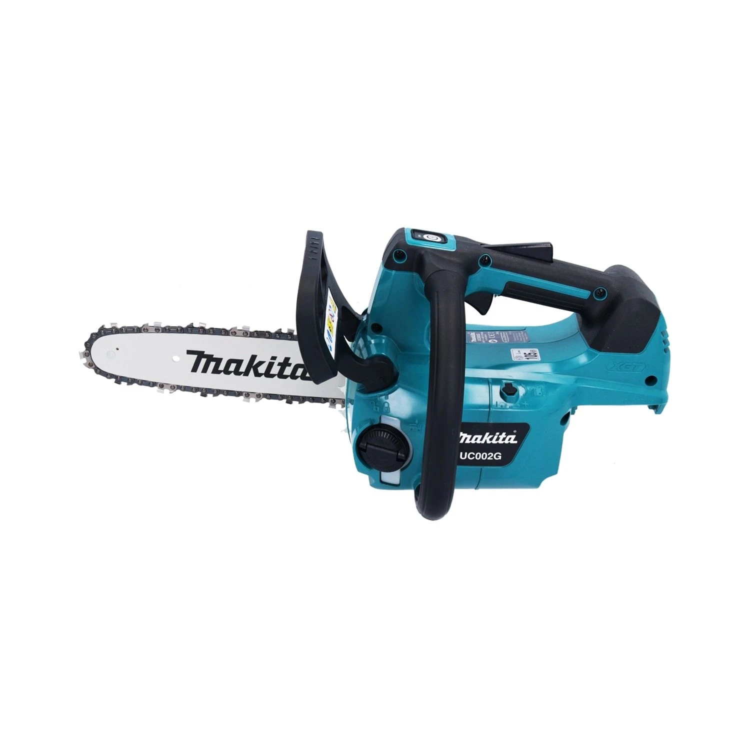 The Makita UC002GD202 40V 2×2.5Ah 250mm XGT BL Chainsaw Kit is perfect for professional gardeners, groundskeepers and landscapers. It contains the UC002GD 40V 250mm Chainsaw with a brushless motor that ensures high performance and longer machine life. With a maximum output of 1400W and chain speed of 0 – 24.8 m/s, you will be able to cut through thick foliage with ease. The grip is ergonomically designed for comfort and its lightweight design reduces fatigue over prolonged use. For safety there is an electric brake and an anti-kickback brake to reduce the chance of injury.