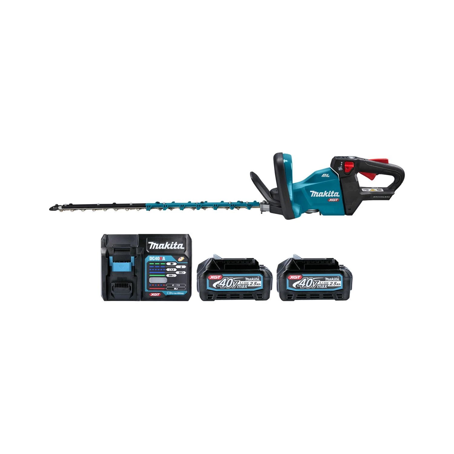 The UH004G is a cordless Hedge Trimmer powered by a 40V Max Li-ion battery with a powerful brushless motor, constant speed control and electric break. The blade features curved teeth, reducing friction resistance to suppress energy loss. Ideal for cutting twigs, thin branches or dense hedges. With 3 speed levels for optimal speed control and reverse for easy release when the knife is blocked. The soft grip ensures a comfortable and secure hold.