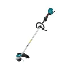 The Makita UR003GZ is a cordless line trimmer with a loop handle, and is powered by a single 40v Max XGT Li-Ion battery. It runs on a high performance brushless motor, and features technology to enhance efficiency and safety. There’s 3 speed settings to choose from depending on the job at hand, and the reverse switch makes it easy to keep the trimmer clear and ready for use.