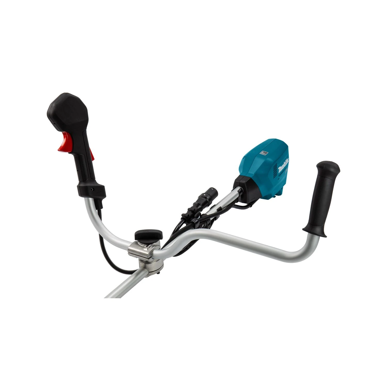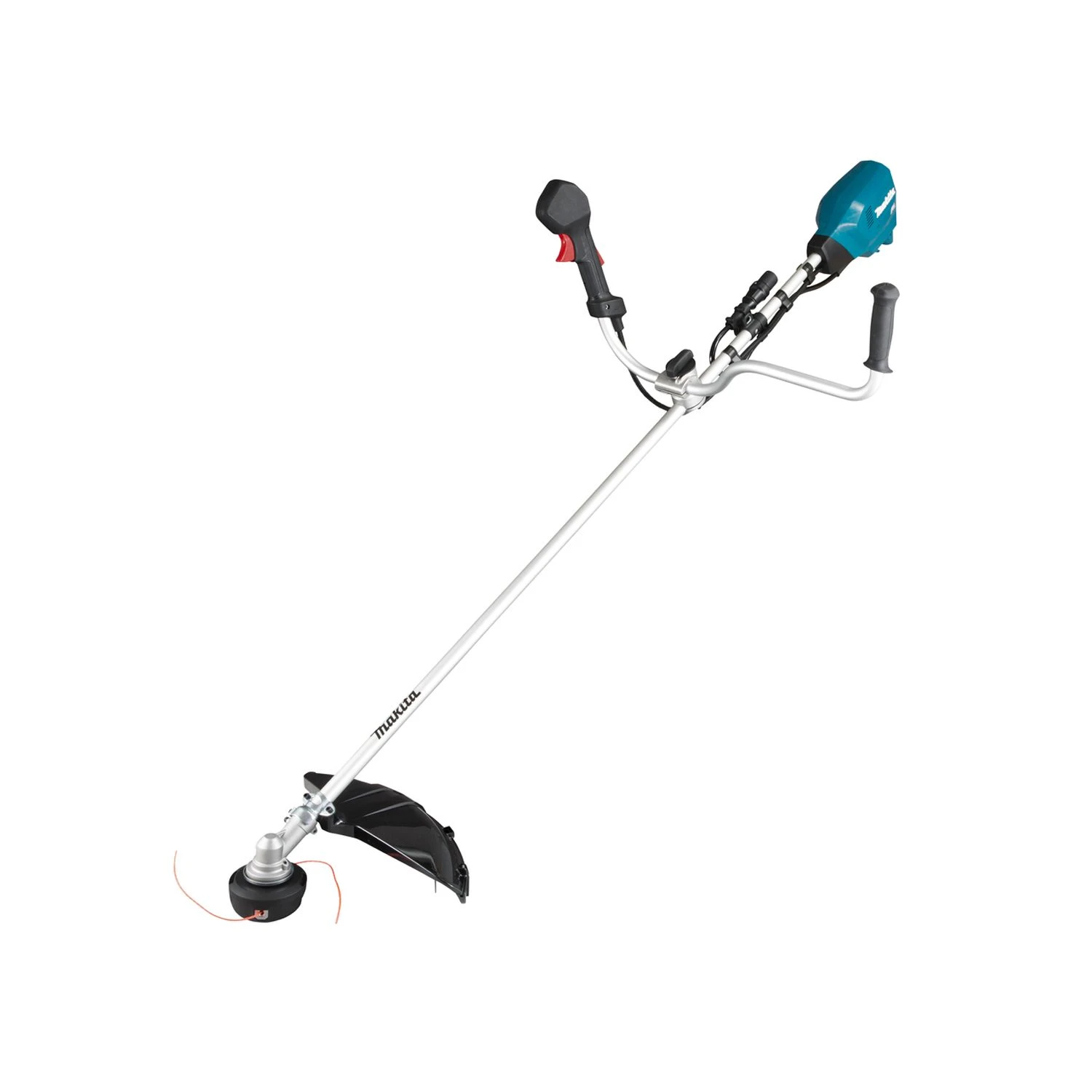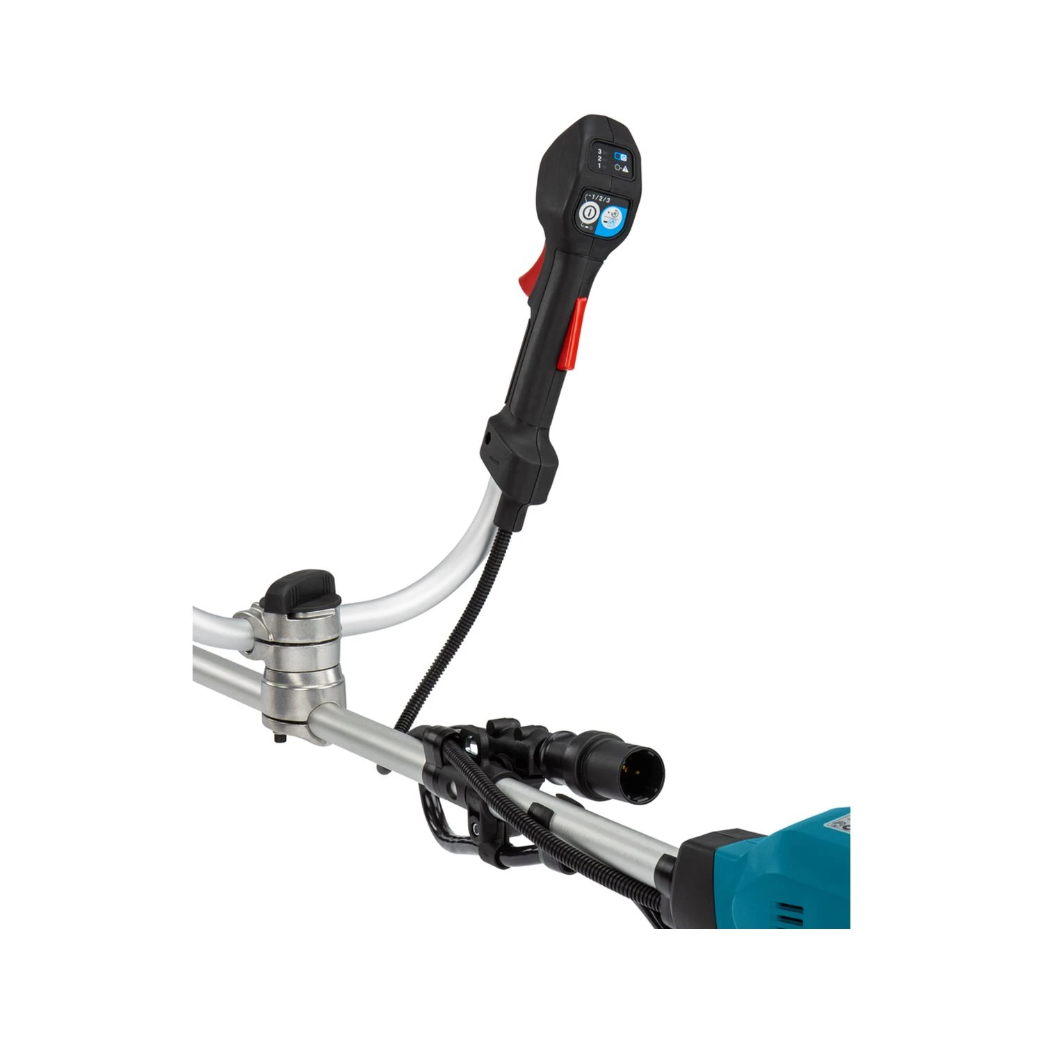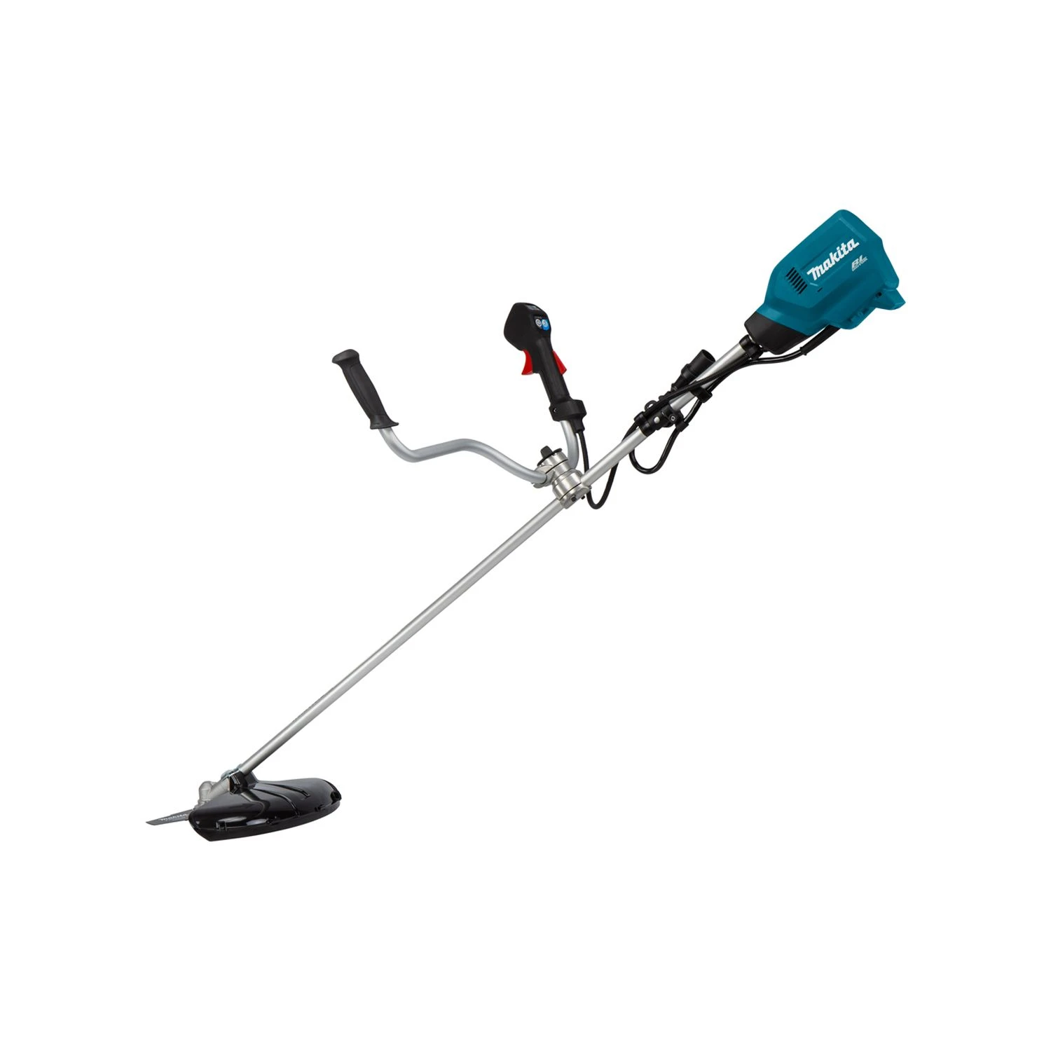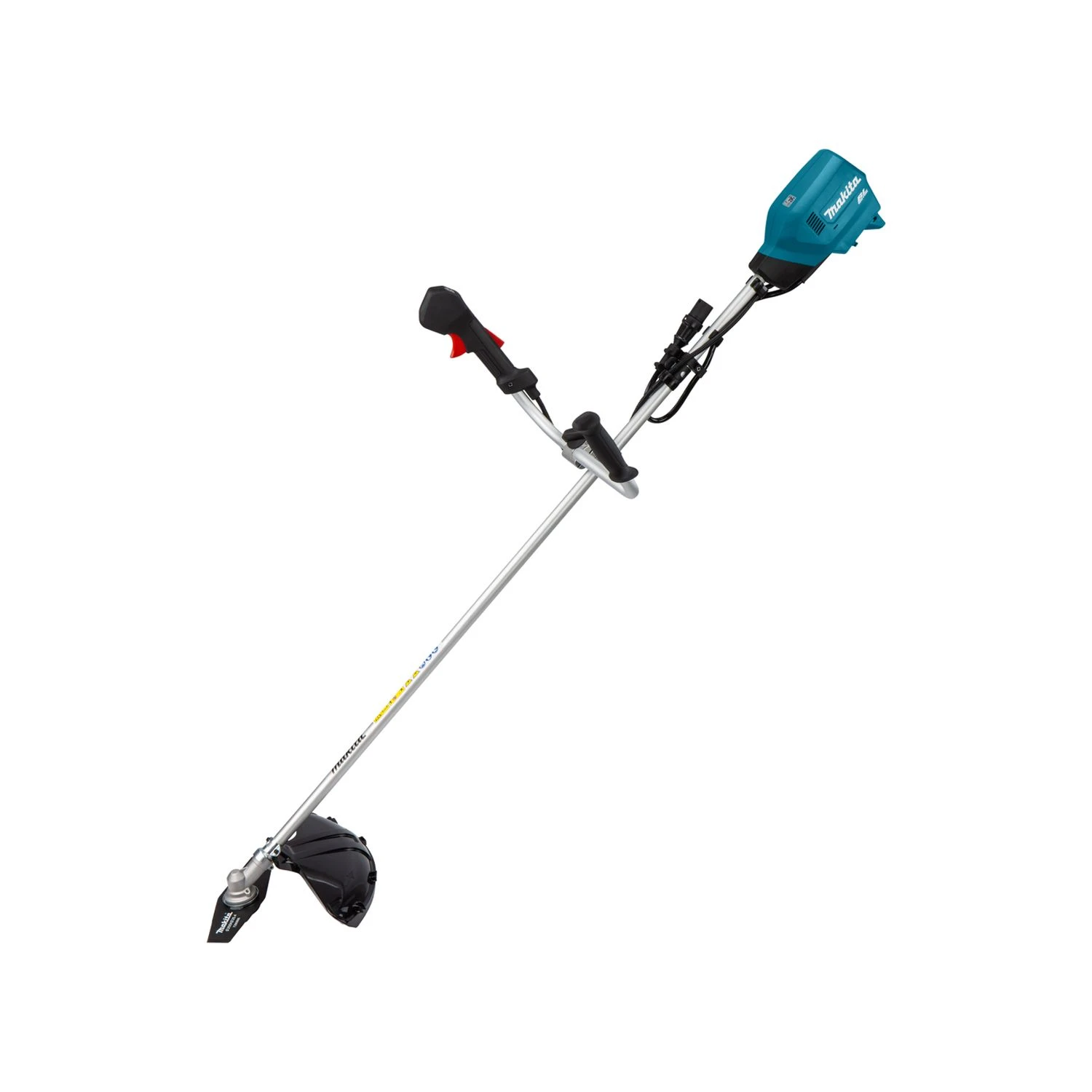 The Makita UR101CZ 36V LXT brushless brush cutter bare unit for use with the PDC01 portable power pack. Ideal for landscapers and professional gardeners. Able to make quick work of large jobs with its 430mm cutting diameter. The Automatic torque Drive Technology (ADT) allows the RPM to be automatically shifted according to the density of weeds. The Actice Feedback sensing Technology (AFT) shuts down the tool to protect the user if the tool detects the rotation speed suddenly slowing down. The brush cutter also features a revese switch for easy removal of grass clippings. Able to perform continuous cutting due to a high cooling capacity that suppresses heat generation of the controller and motor. Supplied as a bare unit.