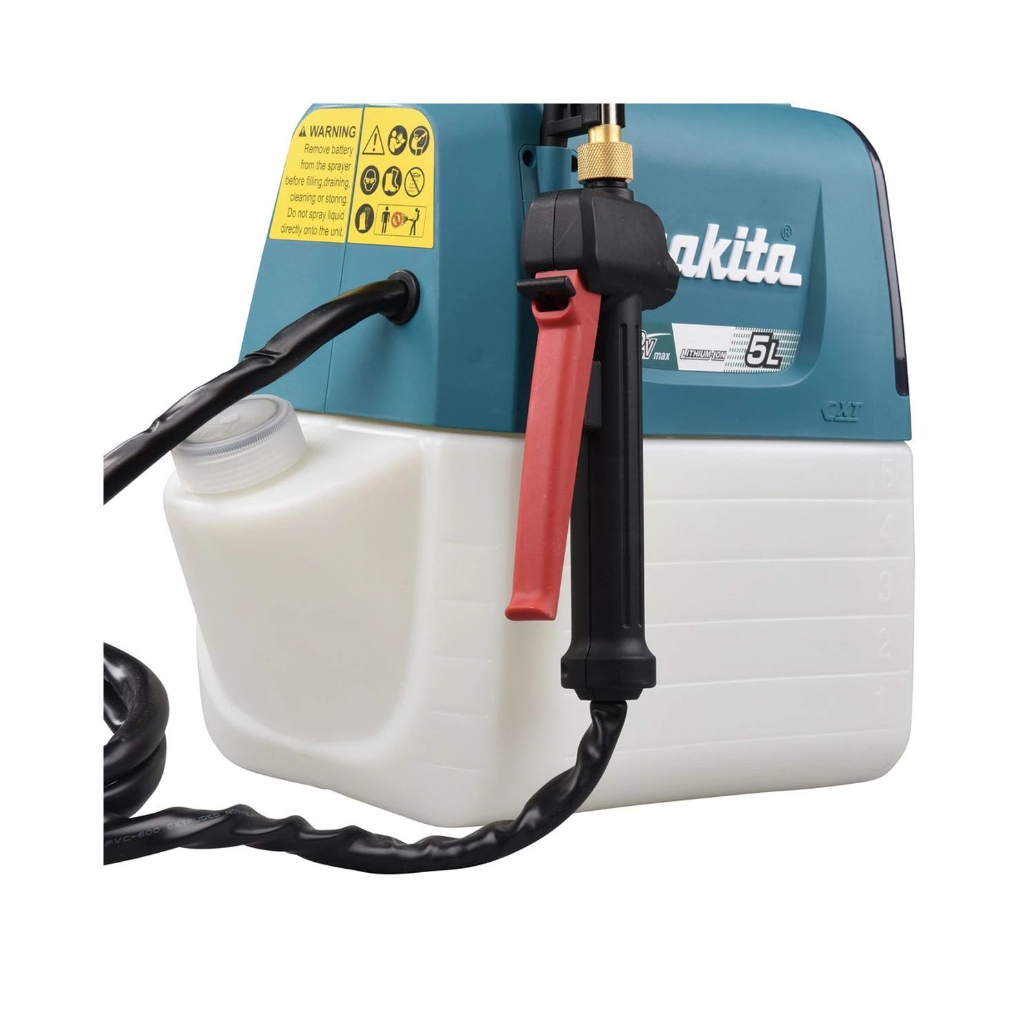 The US053DZ 12v Max CXT 5L Garden Sprayer is a shoulder type cordless garden sprayer powered by a 12Vmax CXT Li-Ion battery. Environmentally friendly with no emissions and extremely low noise.It comes standard with a shoulder harness and has been designed with an optimised tank body which allows it to sit