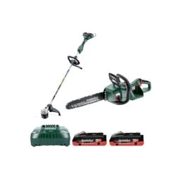 The Metabo 36V cordless brushless twin kit includes MS 36-18 LTX BL 40 36V 40cm chainsaw and FSD 36-18 LTX BL 40 36V 410cm brush cutter. It is comes with 2 x 4.0Ah LiHD batteries and charger