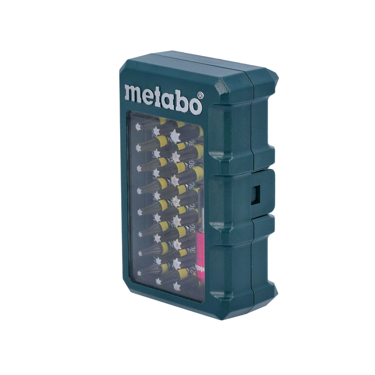 metabo 626709000 bit box 32 pieces fü R torx-schrauben features bits made of chrome vanadium steel (S2 quality) bits with colour coding: for fast and simple detection of the suitable bit high-quality, robust box in special metabo design