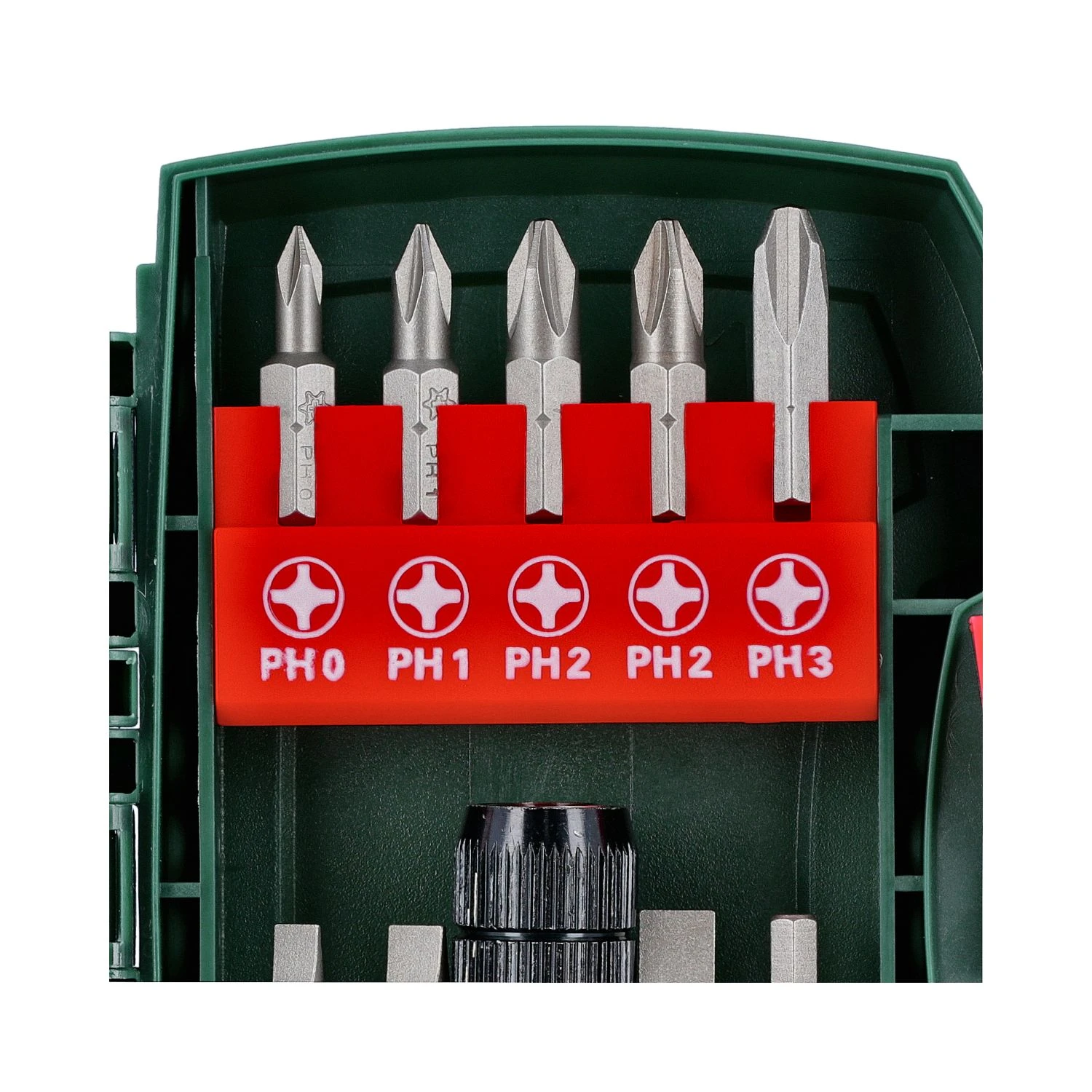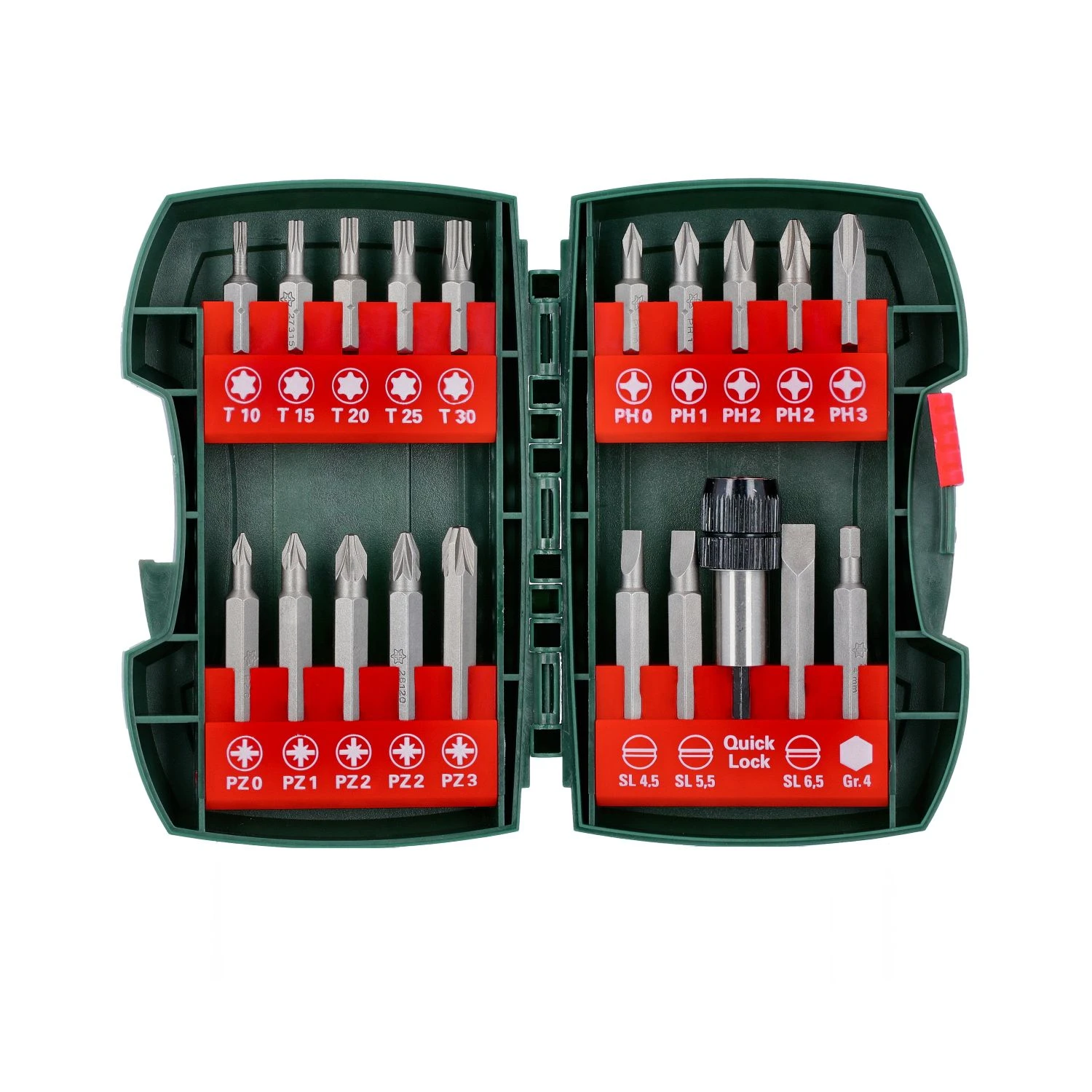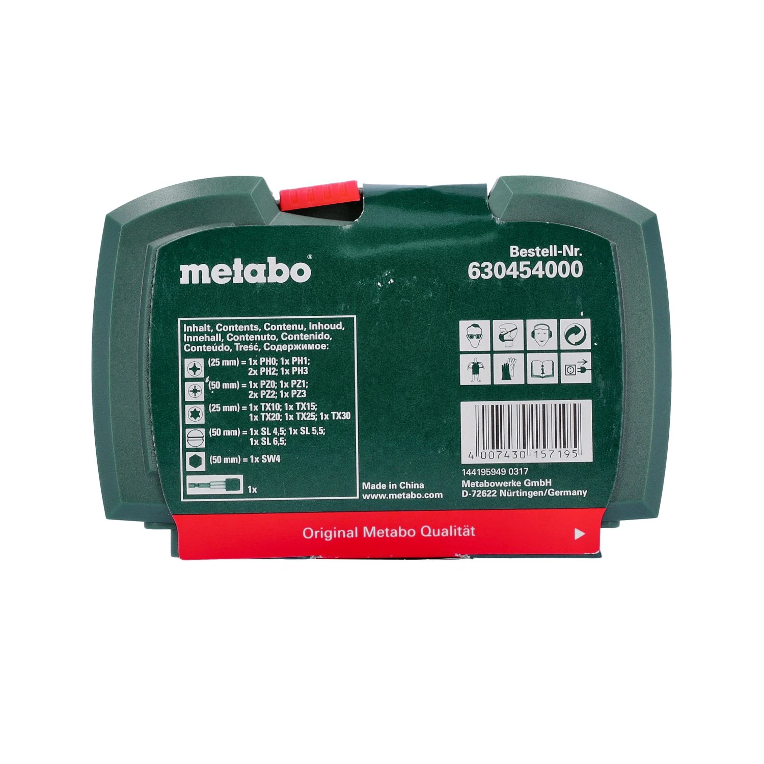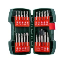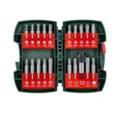 The Metabo 630454000 is an Assorted Bit Set with 19 Bits and a Magnetic Bit Holder. 10 Bits are 25mm long and 9 Bits are 50mm long. The hard plastic case has flip up sections which make bit selection easier.