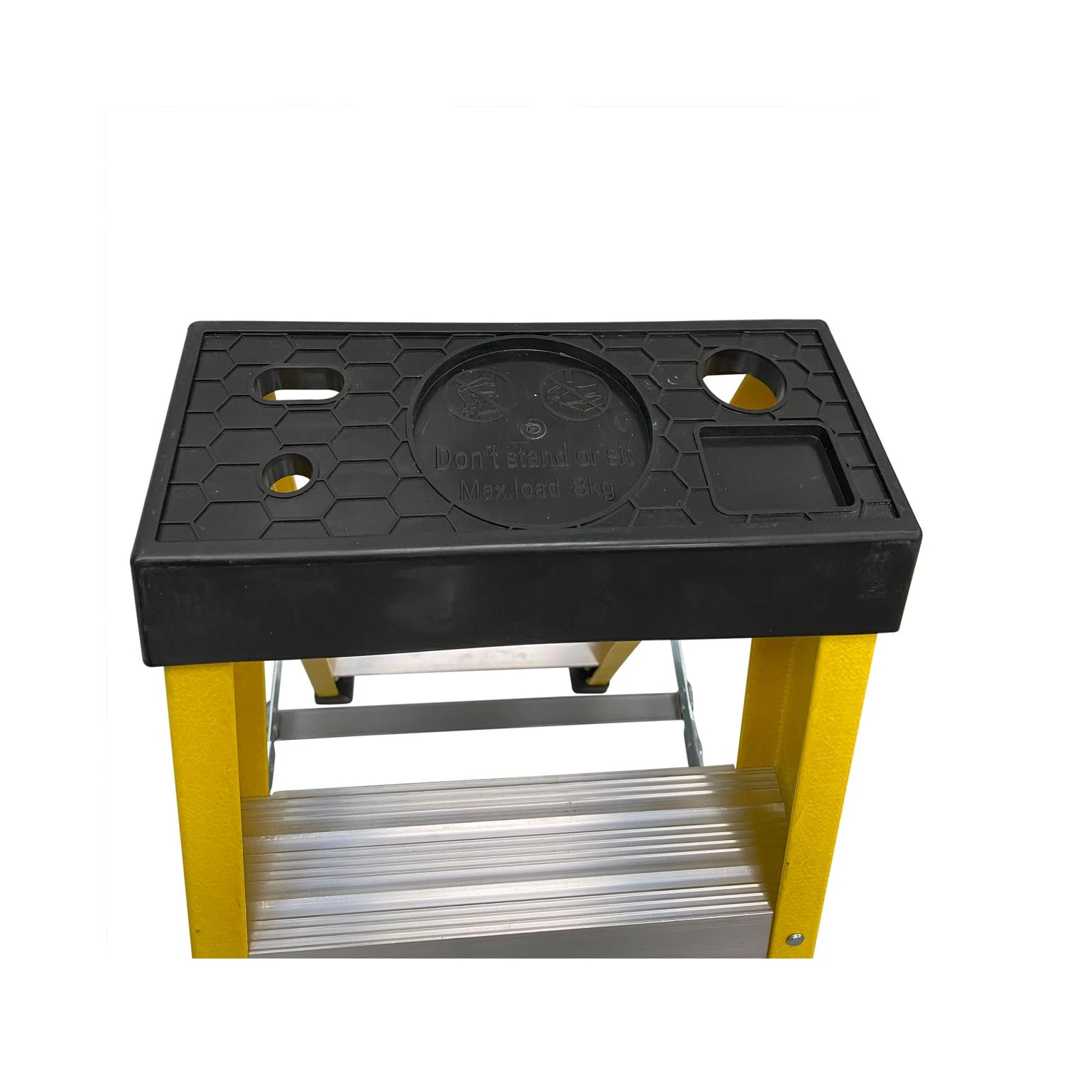 The Murdoch GRP swingback steps are manufactured to withstand vigorous everyday usage. Carrying the EN131 professional label means that the product has been tested to withstand at least 50,000 uses. The fibreglass stiles makes this step your ideal partner when working around electricity. The spreader arm makes opening/closing of the stepladder simple, plus a heavy duty tool tray creates another user friendly touch.
