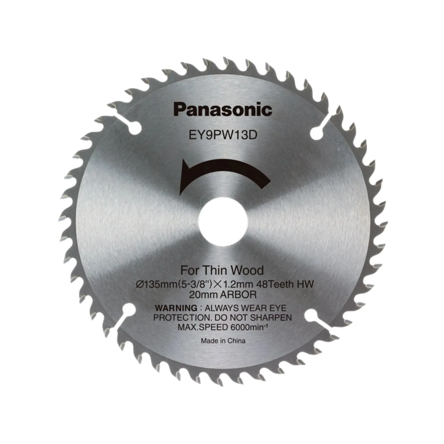 Panasonic EY9PW13 Saw Blade for wood cutting. The blade has an extremely robust design and carbide tips. Use on other materials is NOT recommended. It will result in a rough cut and could increase the risk of kickback or other injuries.