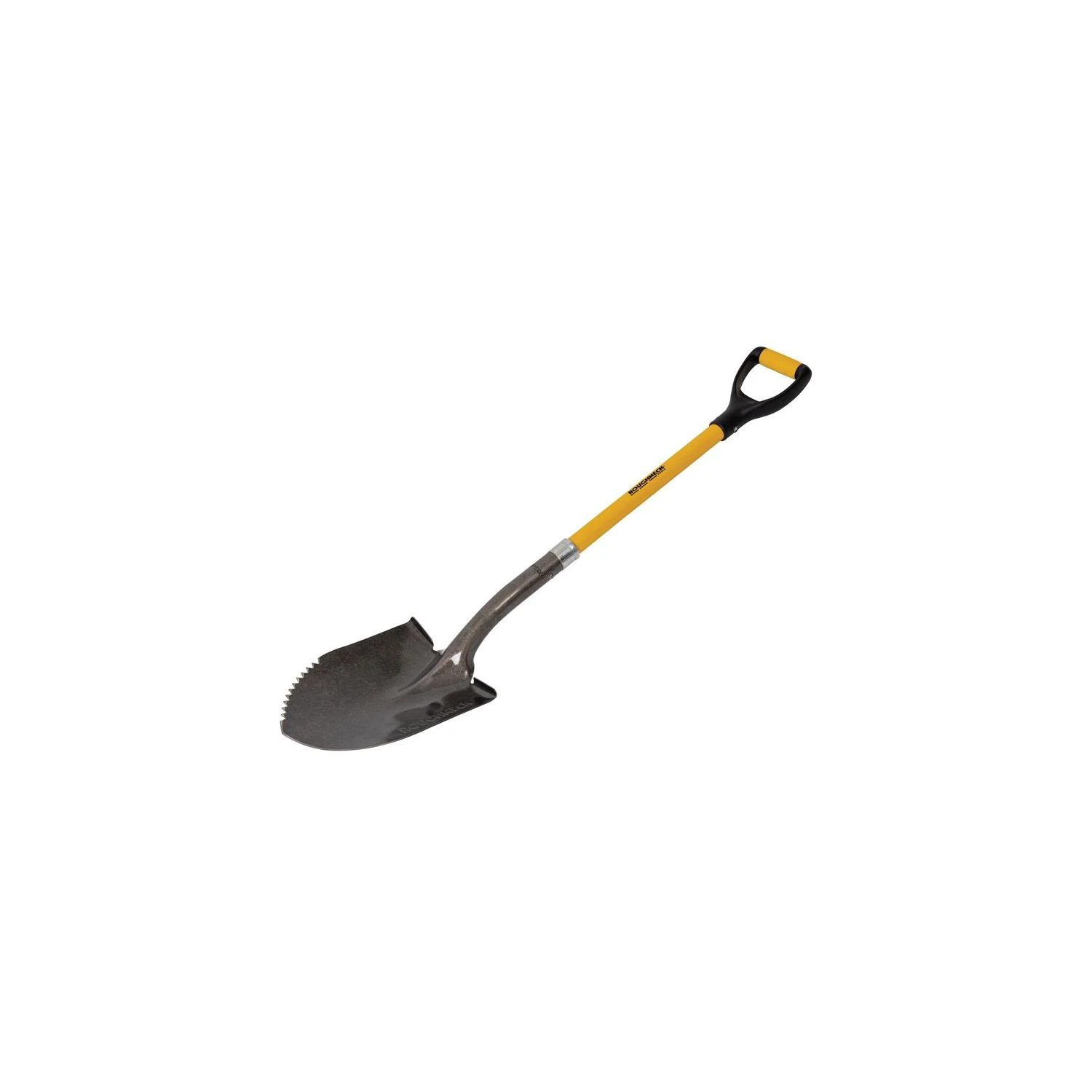 This Roughneck® Round Shovel has a sharp serrated edge, ideal for digging in compacted ground, slicing through roots and opening bulk bags or bags of cement.