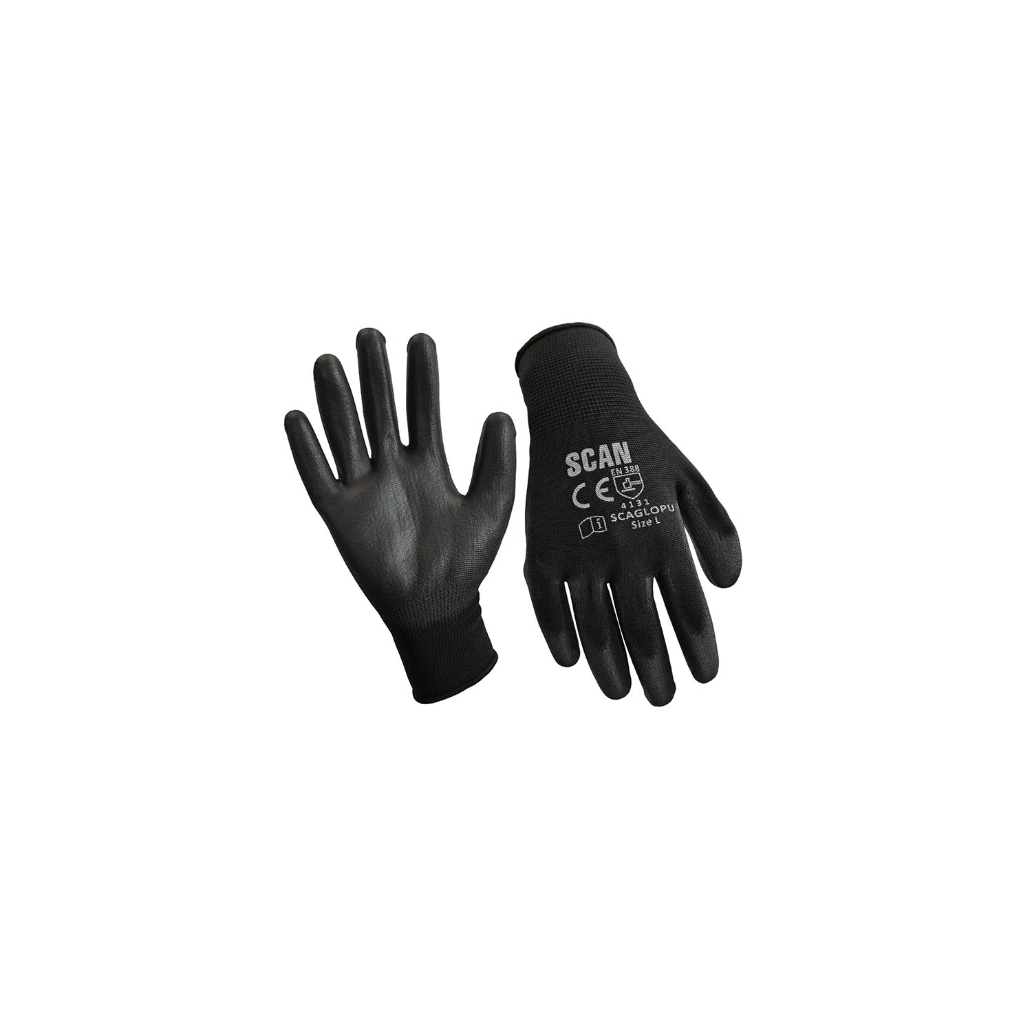 Scan Black PU Coated Gloves – L (Size 9) (12 Pairs)