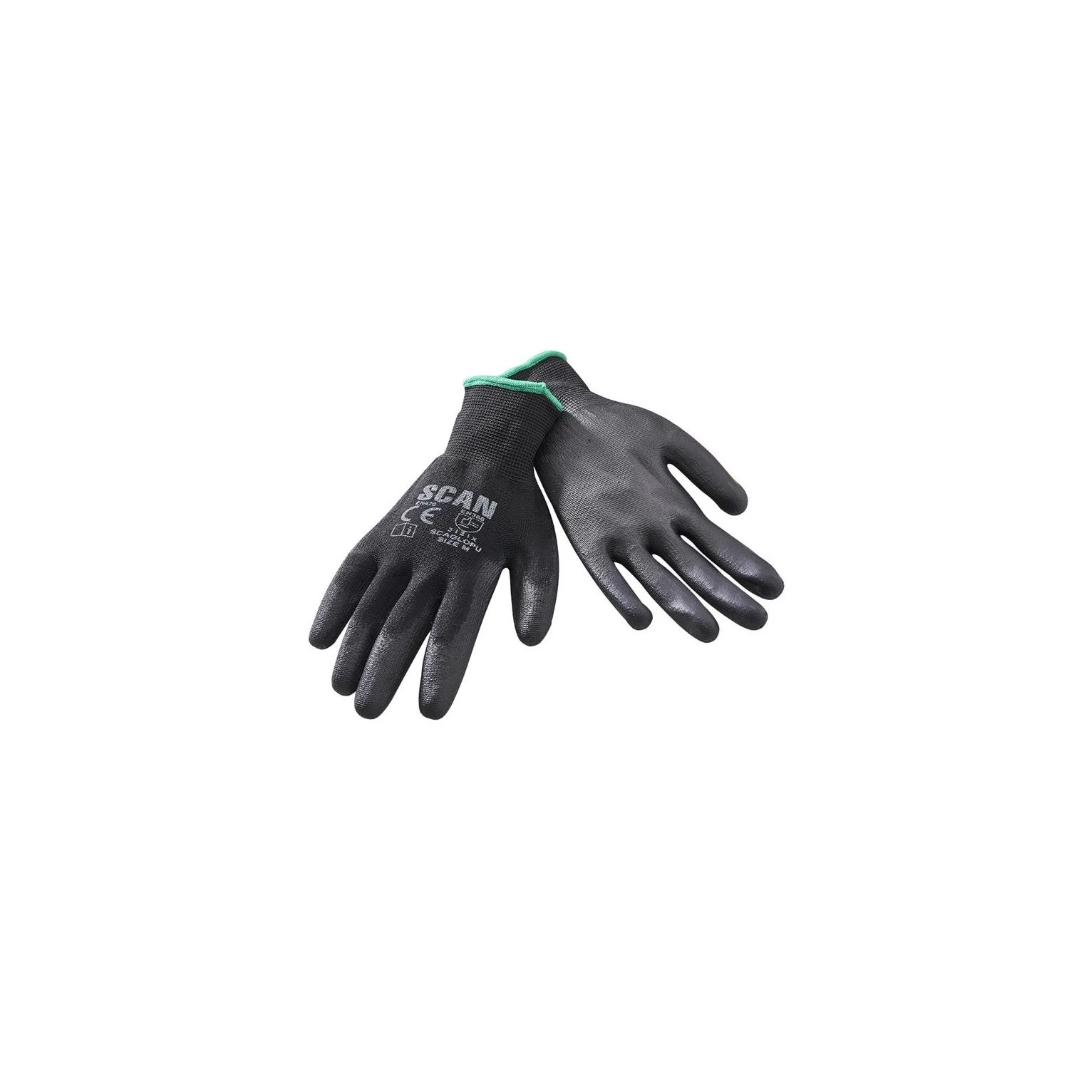 These Scan Black PU Coated Gloves have a seamless knitted wrist and a durable 13g polyester liner. The palm and fingers have been dipped into a polyurethane coating, leaving the back uncoated. Ideal for jobs that require a high level of dexterity and a good protection factor.