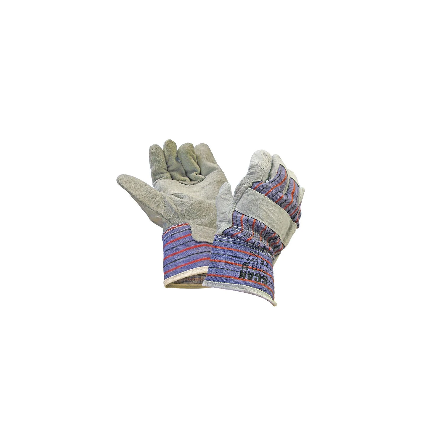 Scan Rigger Gloves are a general purpose glove suitable for most DIY tasks. Made from canvas with added protection, with hard-wearing leather palms and reinforced fingers and knuckles. Made from cow split leather with patched palm and striped cotton back, with reinforced sections on the fingers and knuckle strap. The gloves also have pasted cuffs.