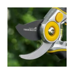 Get heavier pruning jobs done with the robust TM-GP20A Bypass Pruner. It’s made with the same high standards as all of our TOUGH MASTER® products, and has a sturdy cast-metal handle and casing. The pruner’s handles and the cutting blades have two width settings; this is great for smaller hands or when cutting thinner stems and branches, as it reduces unnecessary opening width, which in turn helps prevent hand fatigue. Minimum blade width: 30mm; maximum width: 45mm. The durable, super-sharp Japanese SK85 steel cutting blade has a non-stick Teflon blade coating, guaranteeing an easy, clean cut. The moulded safety lock can be slid open or closed – and clicks securely into place – using the left or right thumb. To protect the spring from dirt and mechanical damage, there’s a telescopic spring cover. The strong, contoured handles resist rust and corrosion and have rubberised non-slip grips for greater comfort and confidence.