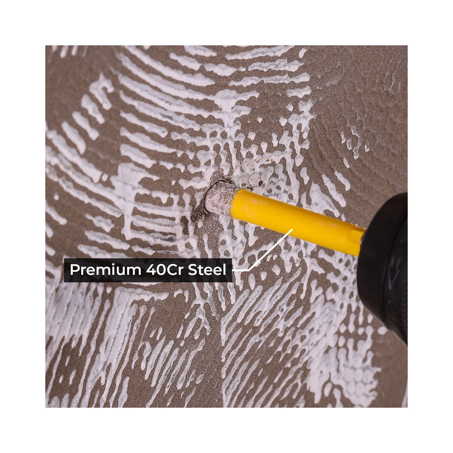 - Steel Body: The body of these bits in the TOUGH MASTER® diamond tile drill kit are made from premium 40Cr steel. This material paired with diamond tips ensures a long service life, with TOUGH MASTER® maintaining its reputation for using top-quality materials only