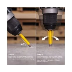 - 45° Positioning: Start by positioning the tile drill bit at about 45 degrees, and then slowly drill it into the hole. This ensures the job can be done with no breaks or cracks. Never drill vertically at the beginning, and slowly move to 90 degrees so that debris can move out faster