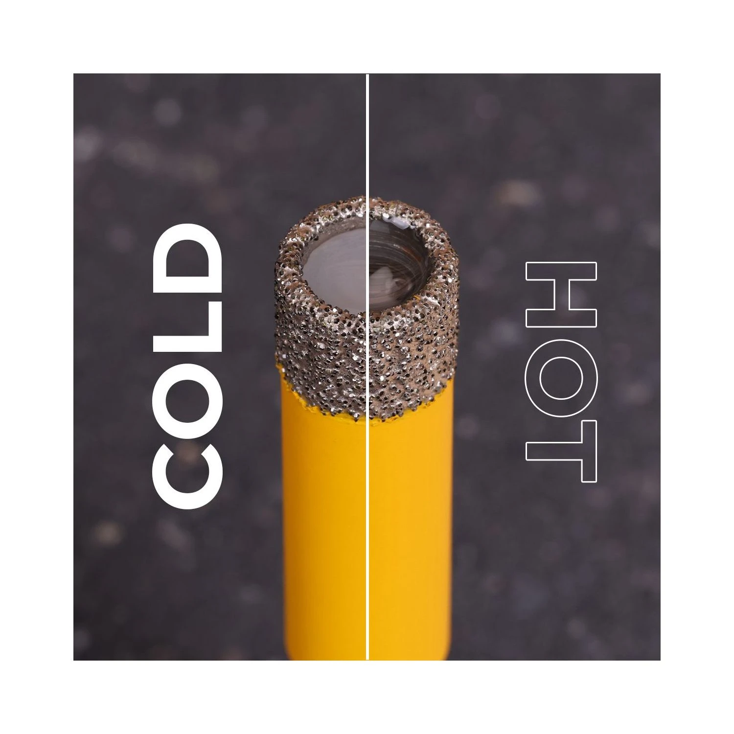 - Dry Cut: Thanks to the wax-filled centre of the professional drill bits, they can be used without water cooling. This means no water is required to use the bits, although you can drill with water cooling if your working condition allows; this will also extend their lifespan