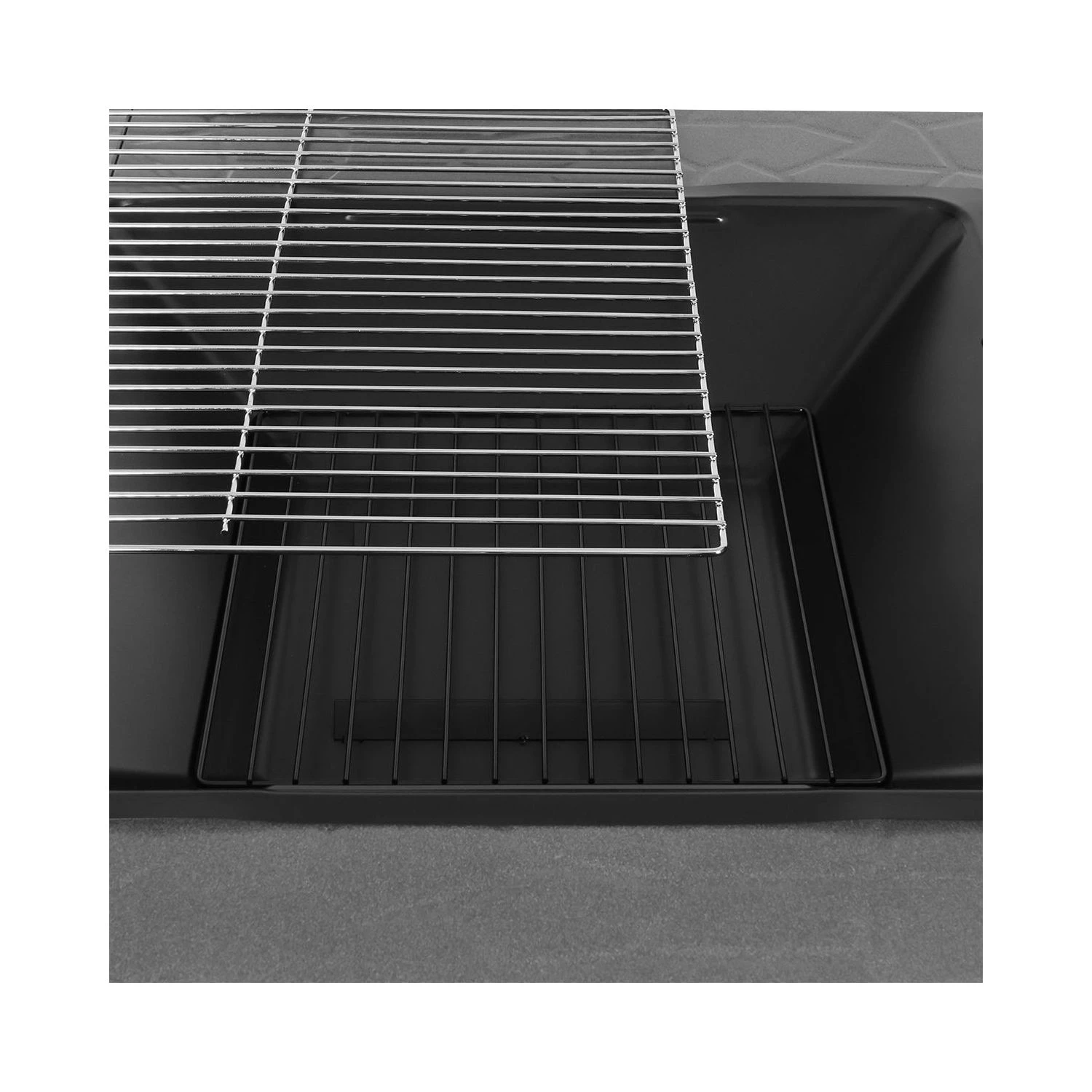 The BBQ firepit’s wrap-around outer shelf has a rust-resistant powder-coated finish for durability and added good looks; this wrap-around shelf also provides a wide, level surface on which you can rest your food and drinks or cooking utensils and platters; its attractive raised pattern also helps to prevent slipping. This prime fire pit’s heavy-duty balustraded frame is made of sturdy steel, and has a low profile plus wide plastic feet for added stability; the frame’s black heat-resistant finish also resists rust and corrosion. For added safety, the brazier has a removable mesh cover to contain any flying sparks, embers and ash; the mesh cover also has a ring pull so that you can easily move it. Inside the TM-FPS32 brazier is its durable steel fire bowl, which can be easily removed to empty ashes and to clean. The removable firepit BBQ grill is created from chrome-plated steel, so it’s both strong and easy to clean. The removable steel fire grate fits at the bottom of the fire bowl to keep burning material off the bottom, thereby allowing air to circulate more freely for even, efficient burning. Use the included poker to stir the coals and to safely remove the mesh cover.