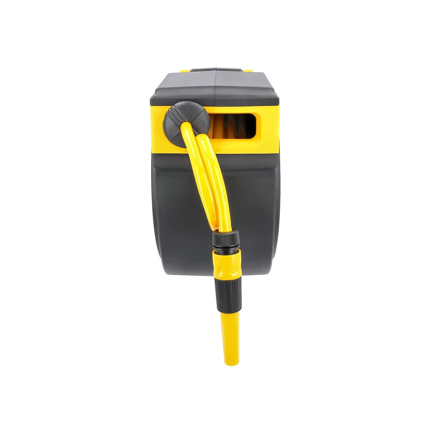 - Automatic slow rewind system: This retractable hose reel rewinds automatically, with an effective brake mechanism allowing you to wind the hose in slowly and safely. It offers an increased retraction time of 7-10 seconds for tangle-free winding
