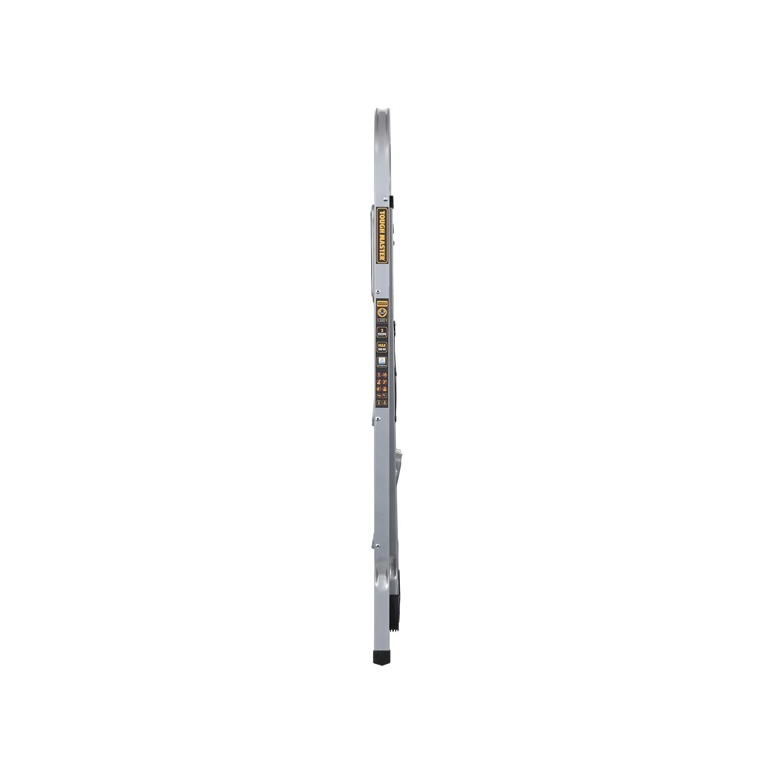 Reach shelves and cupboards with ease thanks to the TOUGH MASTER 3 Step Ladder. This foldable step stool is built with safety in mind, with a durable, ultra-sturdy steel body that will last for years to come. Because of this strong structure, it holds a maximum load of 150kg, perfect for small jobs. It features anti-collision rounded angles to protect your walls from damage as well as wide steps and anti-slip rubber mats and feet for safe use on different surfaces. The small step ladder folds flat to save space and is compact for easy storage, ideal for home and professional use. Store it in the cupboard, back of a worker’s van or various small crevices for easy access and tidy storage. The folding step stool is also lightweight and meets the EN14183 standard for ladders and has been tested and approved by TÜV Rheinland to ensure quality, safety and efficiency. Use the platform ladder for many tasks that involve working at a height and find peace of mind thanks to its reliable safety lock mechanism, ensuring security and stability.