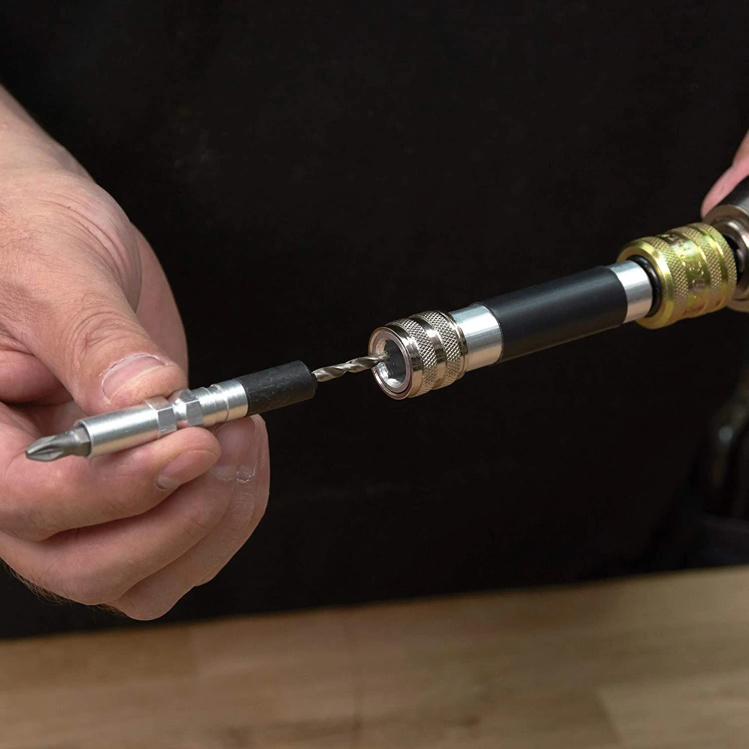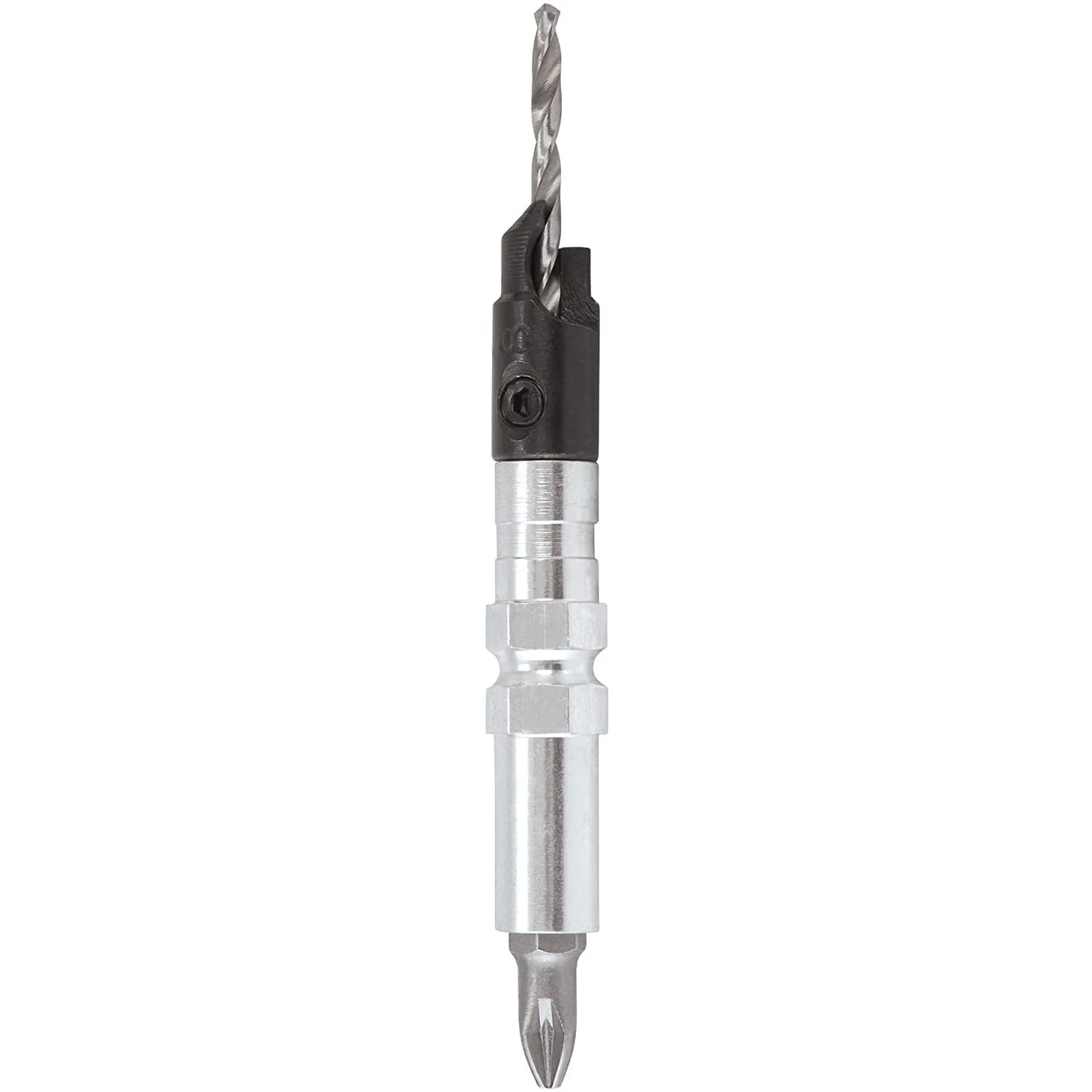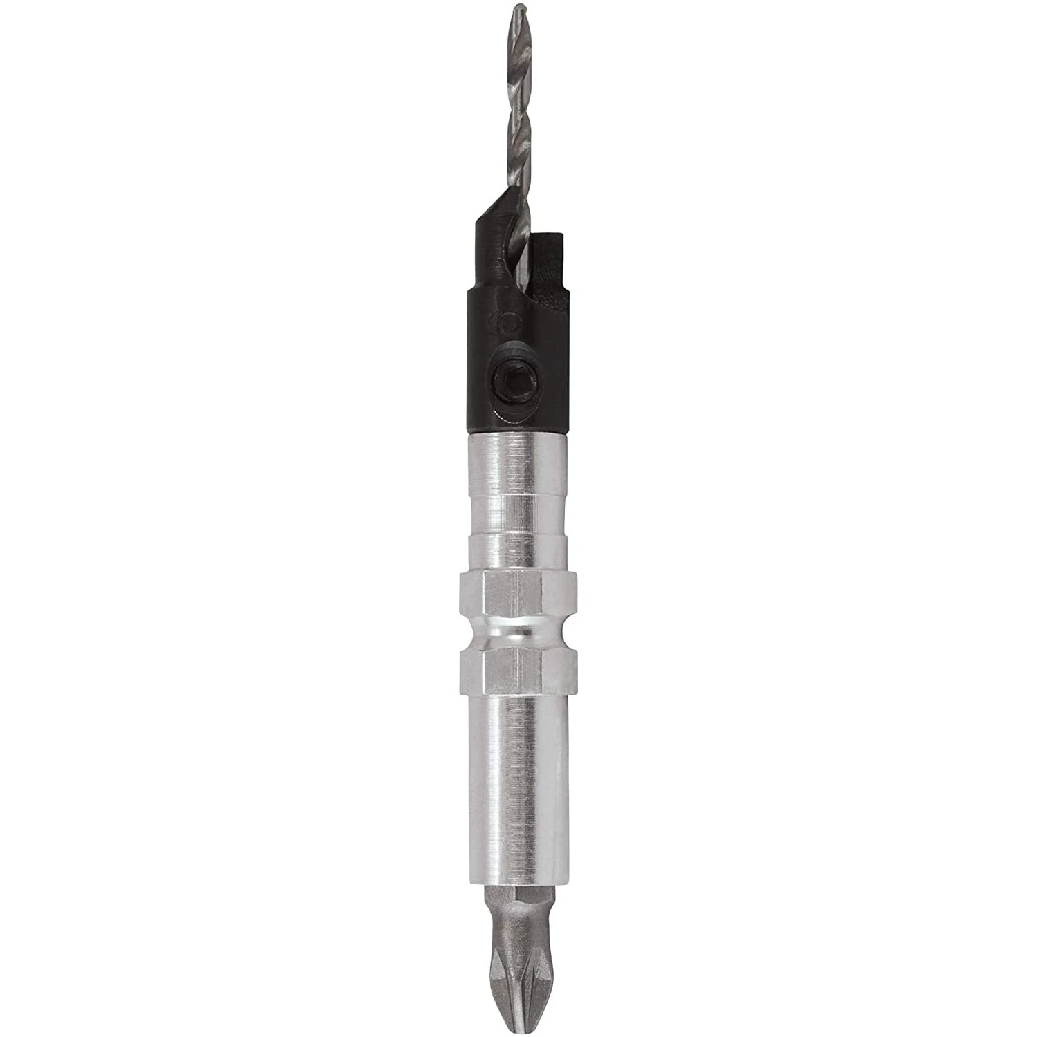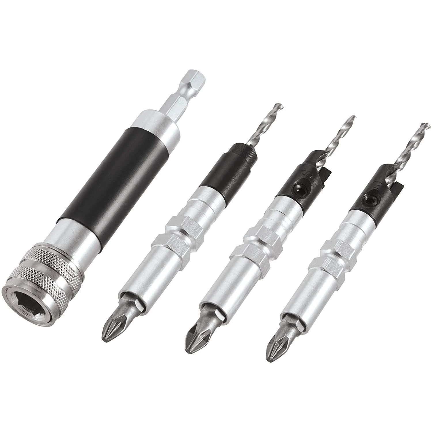 A four piece drill countersinking and screwdriving flip over set. Supplied with quick-change shank for fitting into Trend snappy quick chuck.Drill length can be adjusted with 5/64inch a/F hex key and is supplied with No 2 Pozi¬ drive Insert bits.