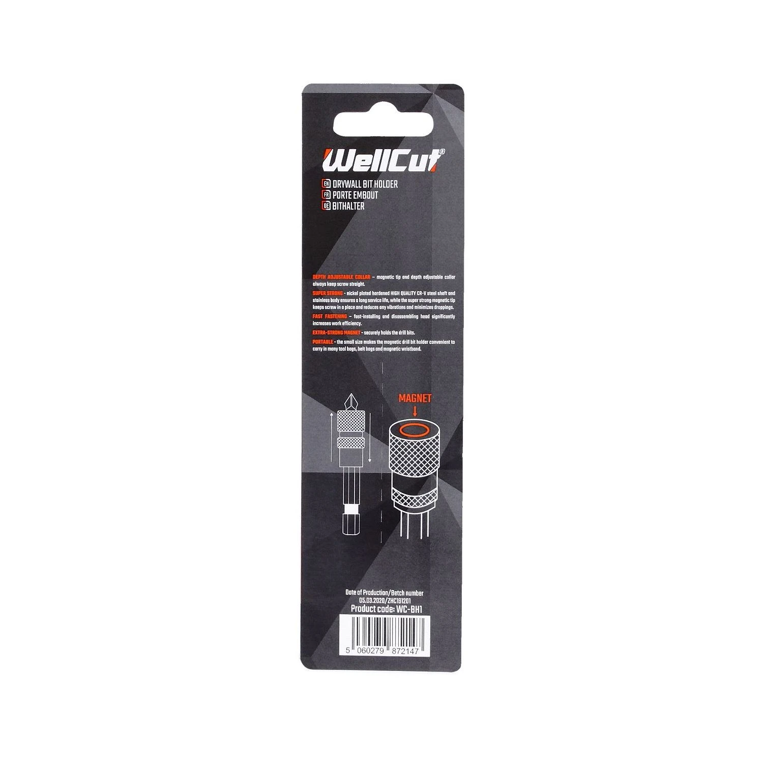 Designed specifically for use with drywall and softer surfaces, this handy bit holder features a depth adjustable collar to hold bits at exactly the right height to drive screws flush. The super-strong magnetic tip keeps screws in place and reduces any vibrations and minimises drops, allowing for hands-free operation. Ideal for use with hand-held drivers of drills compatible with 1/4″ hex shank. The perfect bit for professionals and DIY enthusiast alike.