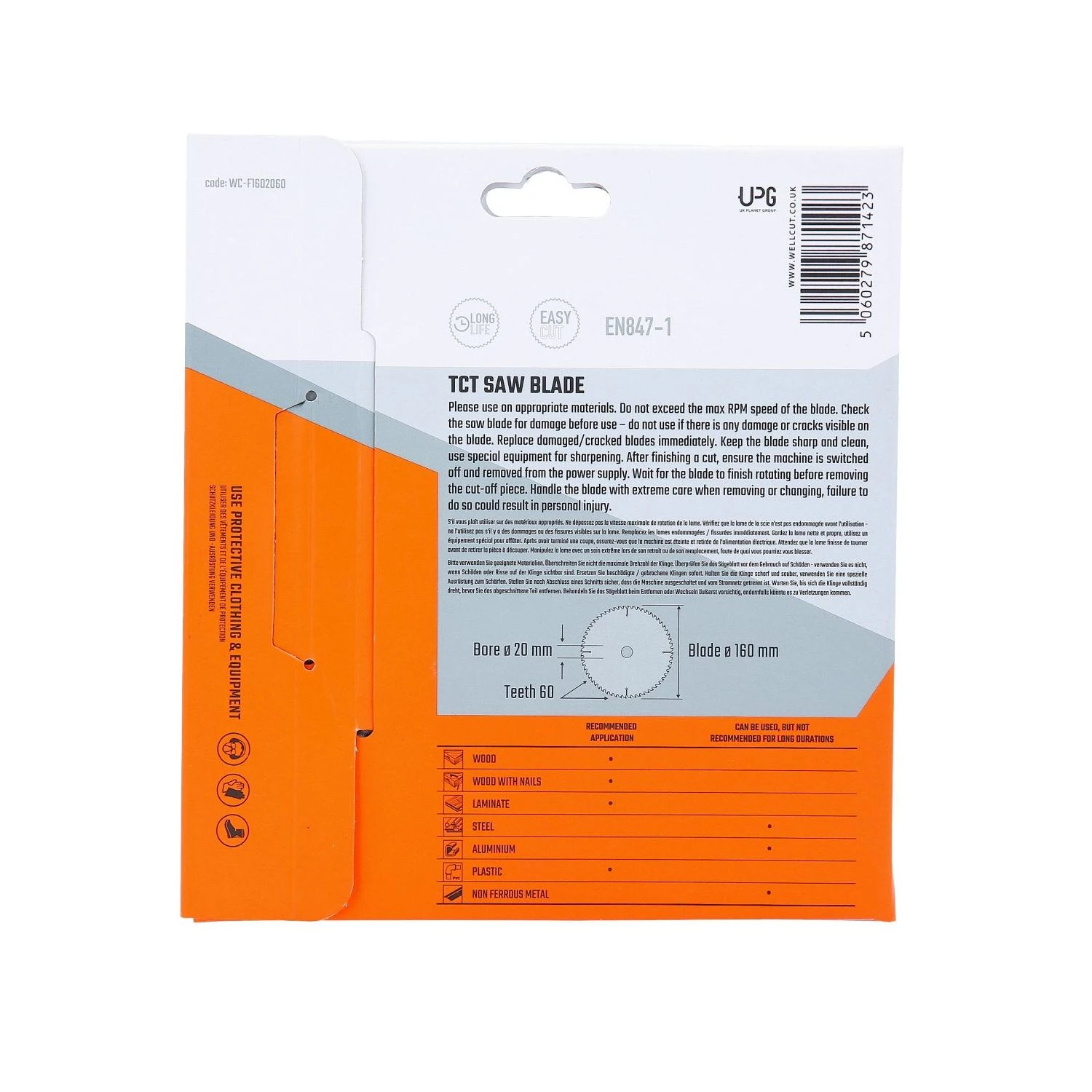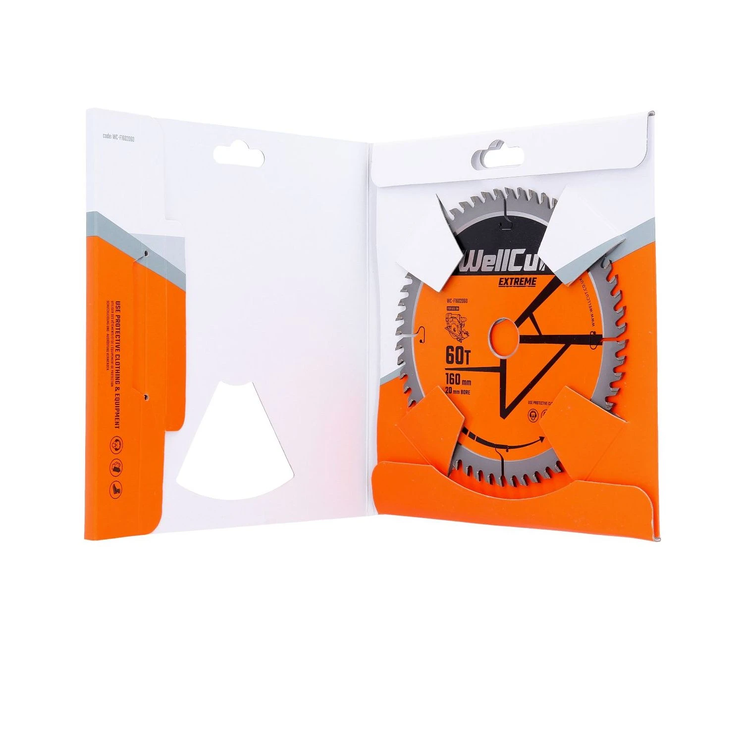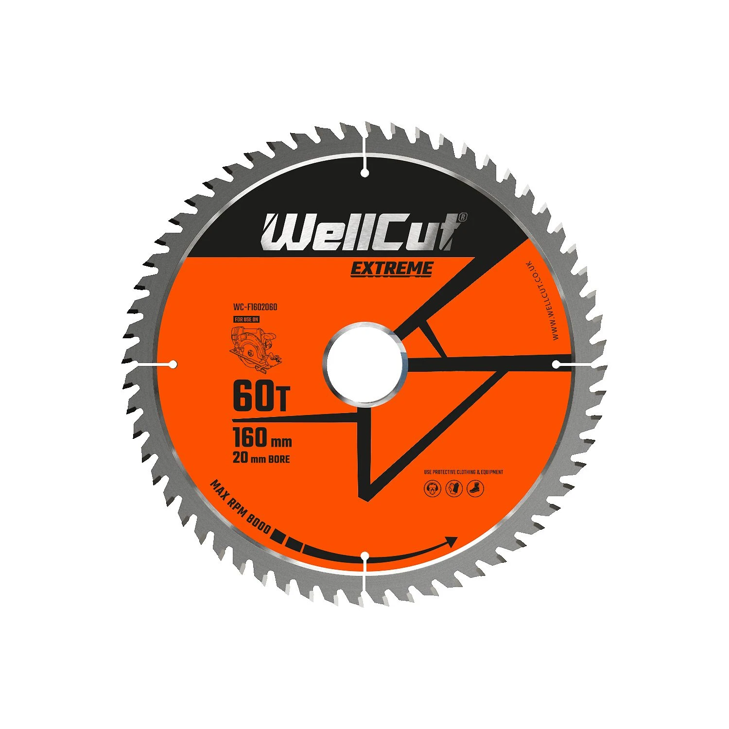 Get WellCut®’s 60T, 20mm Bore Extreme Circular Saw Plunge Saw Blade and seamlessly cut away. The sharp saw blade is designed with an Alternate Top Bevel tooth shape, suitable for the cutting of various materials, including hardwood, softwood, particle board, and Medium Density Fiberboard (MDF). With an impressive 60 Teeth, this wood cutting circular saw blade is recommended for very clean, fine cuts. Not only this, its laser-cut body will ensure you get accurate and straight cuts. This tool accessory will keep its quality when maintained with your favourite circular saw blade sharpener, making it last for years to come. What’s more, this essential product is made of premium tungsten carbide teeth with a 17° positive rake angle for increased durability and standard of performance. This saw blade is ideal for use with a variety of different professional circular saw and plunge saw tools, including cordless circular saws. Use it with your Makita circular saw, your DeWalt Circular saw, your Festool plunge saw, and many more well-known brands of circular saws.