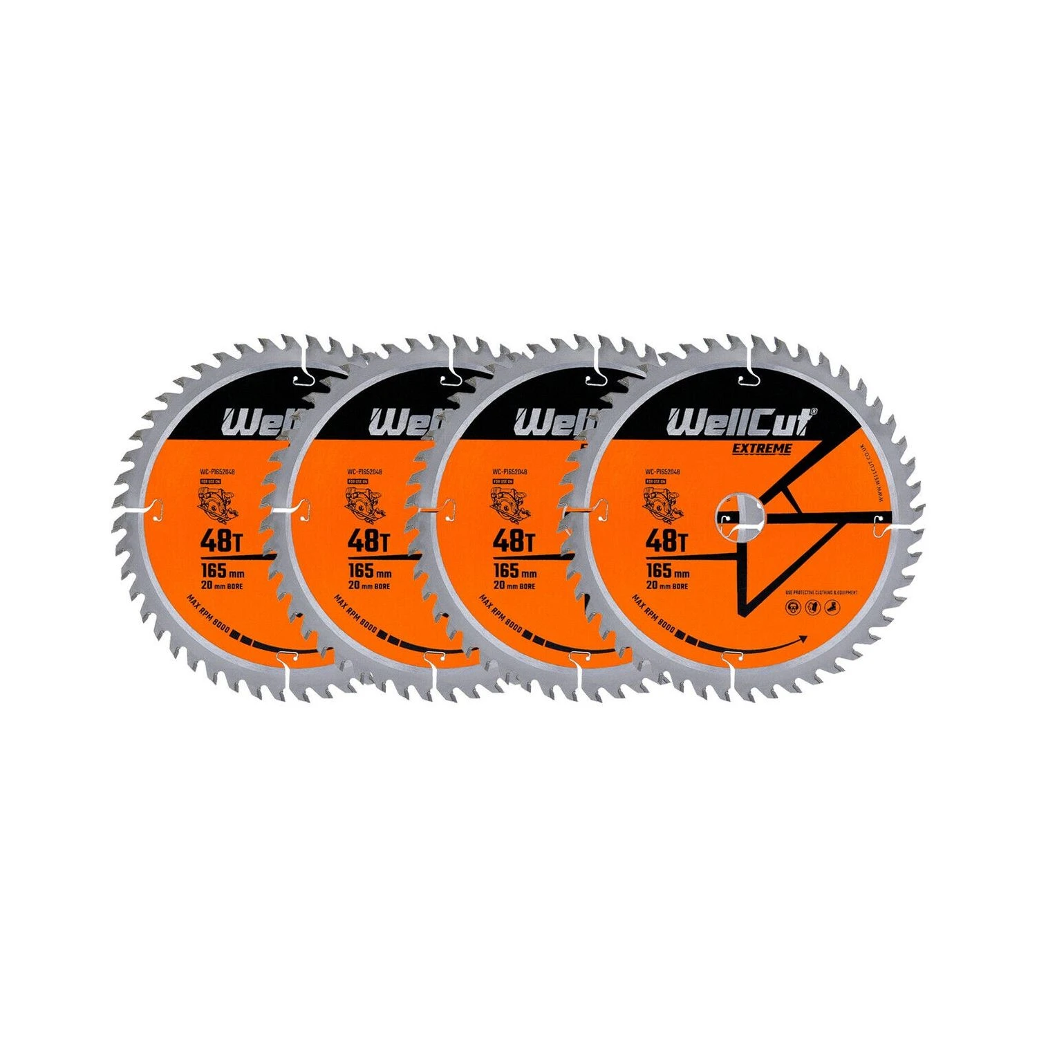 WellCut® TCT Extreme Circular Saw Plunge Saw Blade 165mm X 20mm X 48T, Suitable For SP6000, DWS520, DCS520, GKT55 Pack Of 4