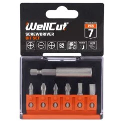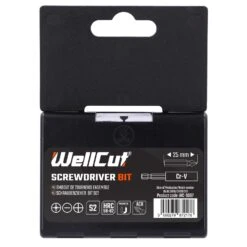 WellCut screwdriver bit sets with magnetic holders are versatile and compact. A 7 piece set of 25mm screwdriver bits inphillips, slotted and pozidriv formats. Made from reinforced S2 steel, which, when in combination with high-frequency hardening, provides optimal performance. WellCut bits do not break when working with screws of any hardness. High strength and long durability ensures maximum use from this product.