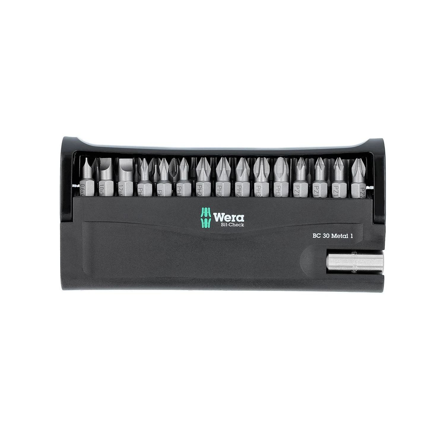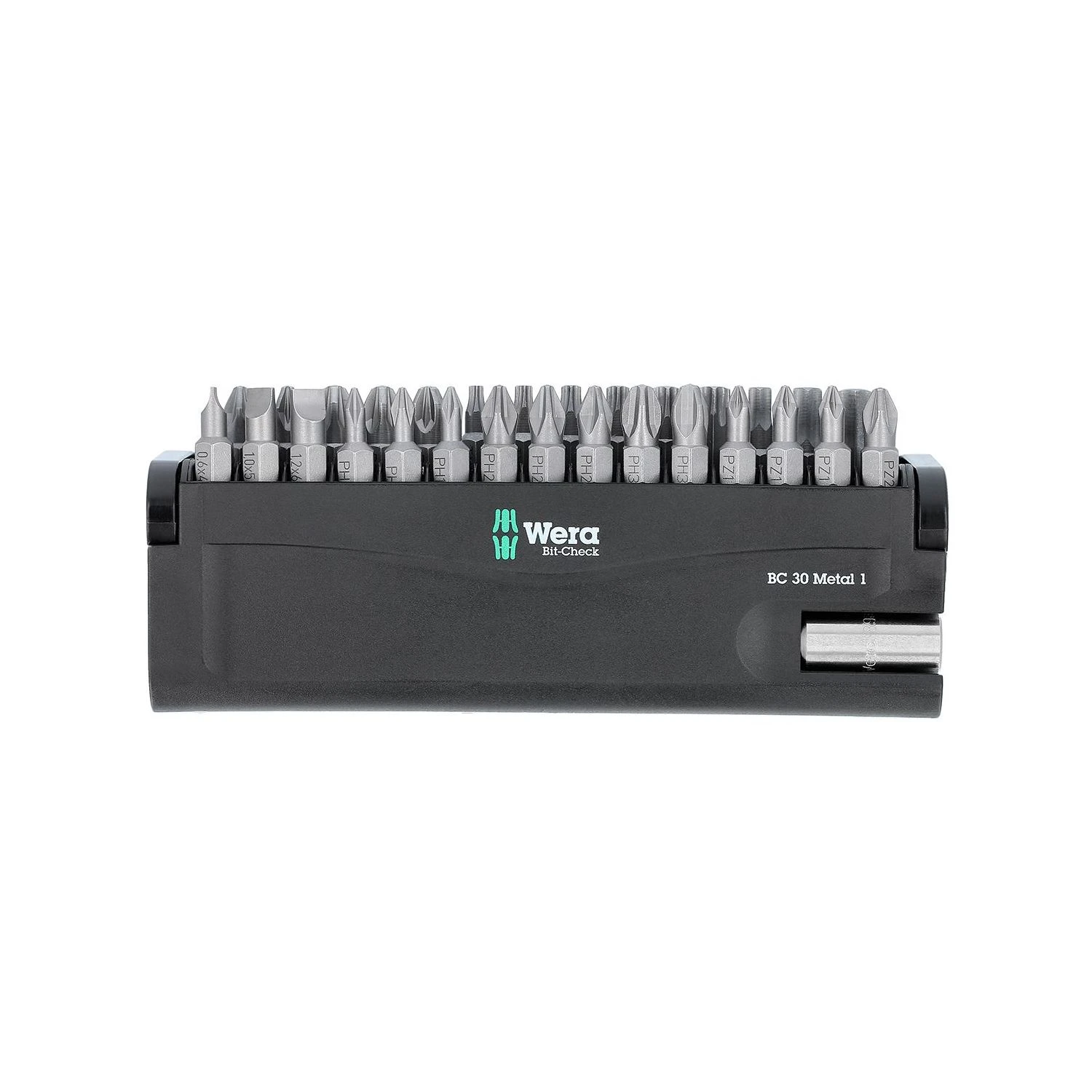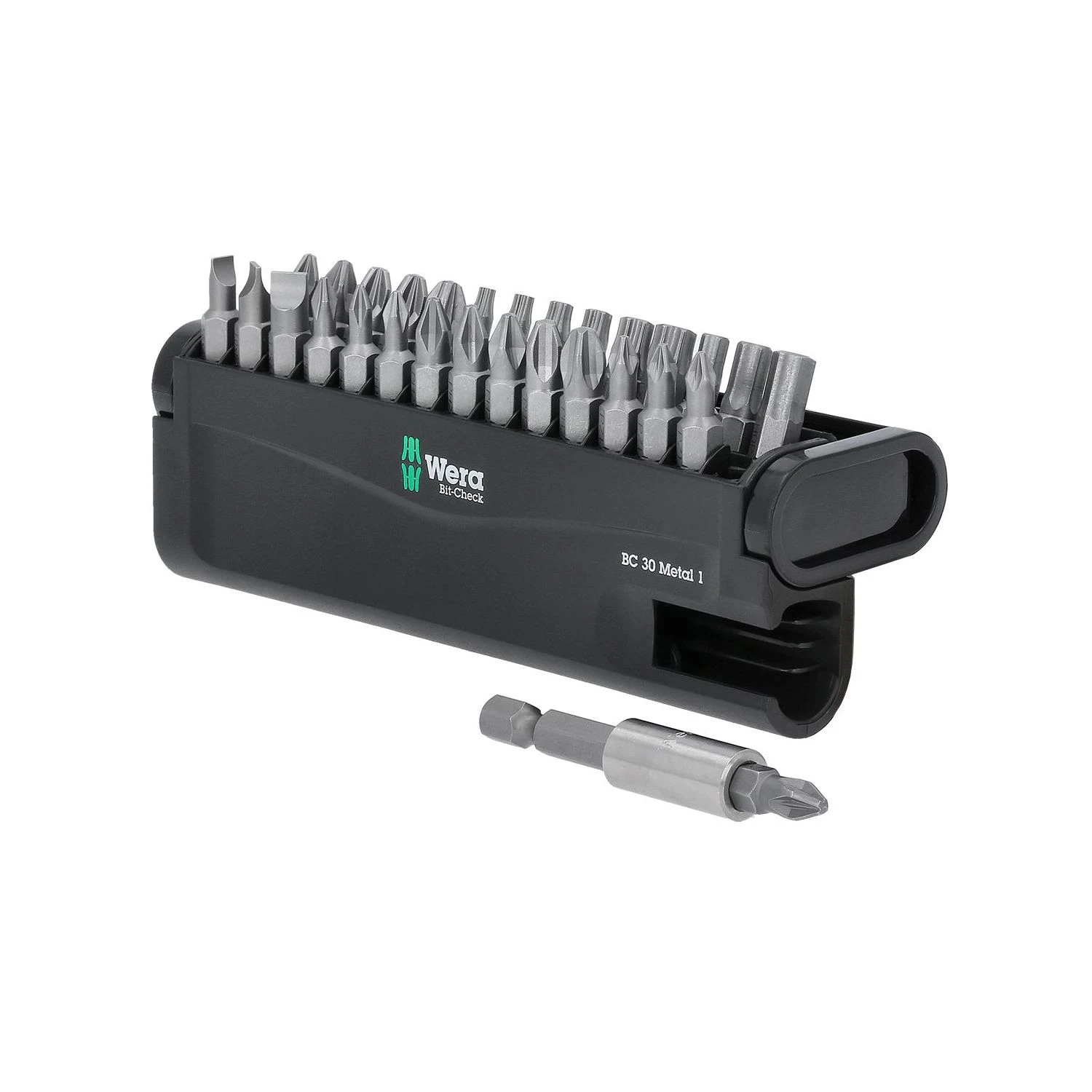 The Wera bit-check 30 metal 1 general purpose bit set for drill/drivers with stainless holder is designed for compact and organised tool storage. Extra-tough (Z) bits are suited to hard metal jointing, threaded fasteners and general use. With a slim stainless universal bit holder with ring retention for insert and power bits. Wera bit-checks feature a compact design to safely store bits in a case that provides fast and easy tool selection. So slim it can fit into your pocket. Sorted by drive and size, the tools are easy to locate and return to proper position, making missing products easy to identify.