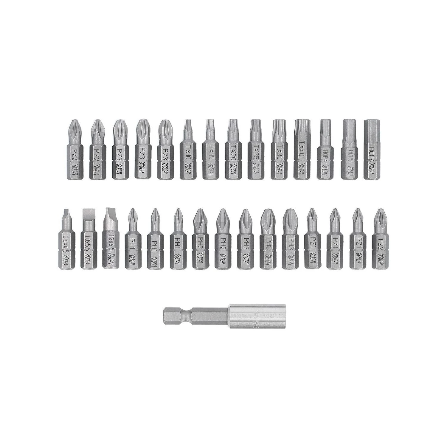 - 1 x 1/4″” x 50mm universal bit holder and 29 x 25mm Z bits